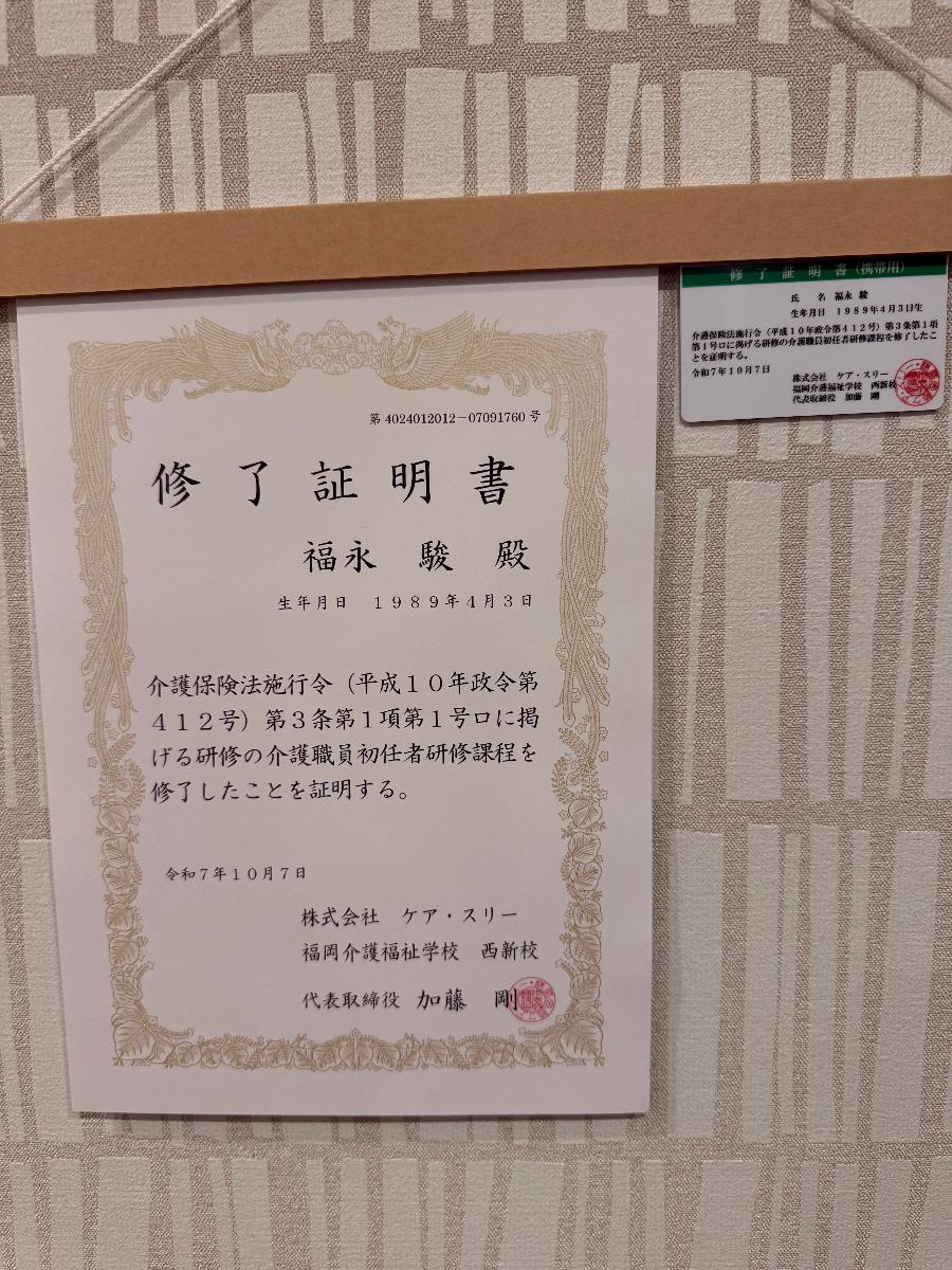 安心してご利用いただけるために ― 介護職員初任者研修を修了しました