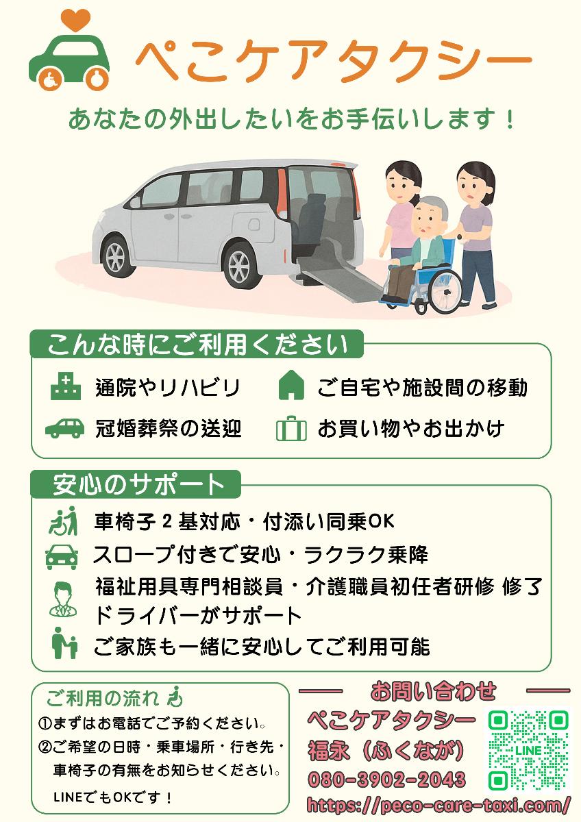 介護タクシー「ぺこケアタクシー」サービス開始のご案内